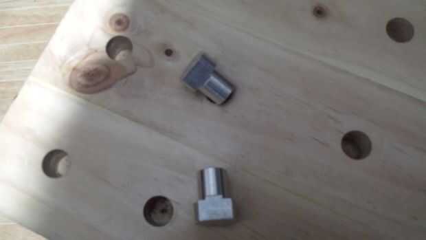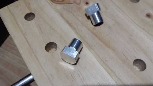 Los perros de banco se hacen de aluminio forma 1 pulgada en la parte superior y 3/4 de pulgada en la parte inferior también molido onse lado plano para hacer la empuñadura a la pice adosada