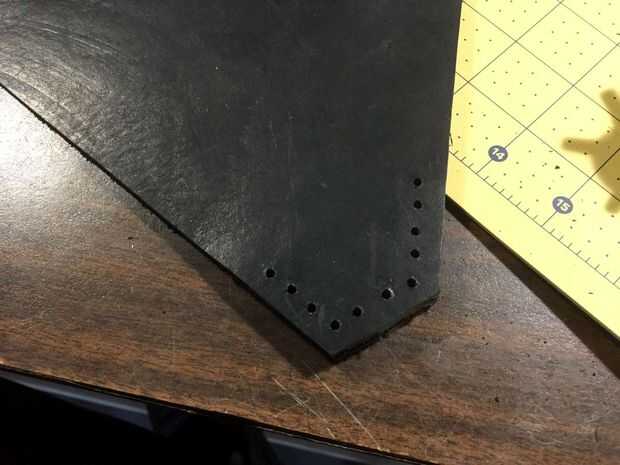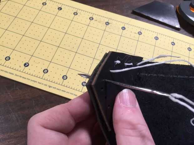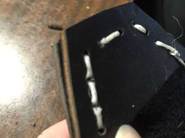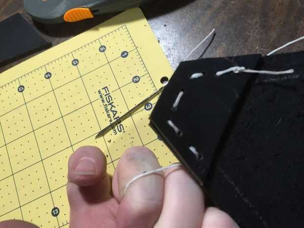 Cuando tuve un sistema lleno de agujeros que empareja para arriba I rosca una aguja de cordón de gran calibre con algunos tendones artificiales y cosidas la piezas juntos una dirección con un punto de funcionamiento siguiente vuelva a través de la dirección opuesta por lo que no son vacíos y cada hoyo ha sido roscado dos veces.