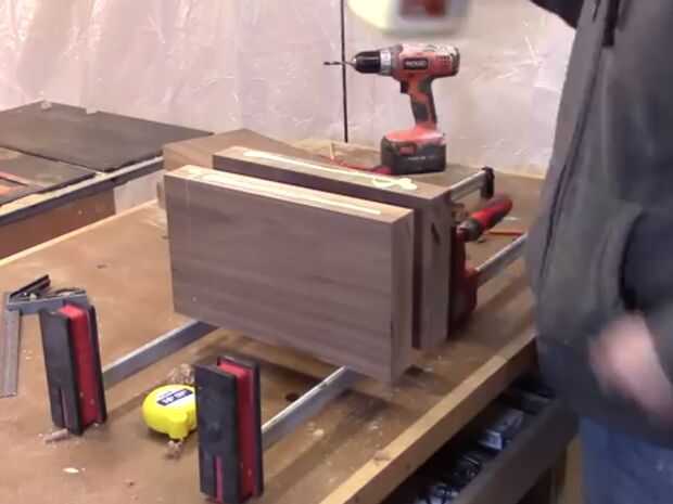 Puede entonces rip 3 patas y 3 camillas a 1 1/2" y unir las dos piezas principales.