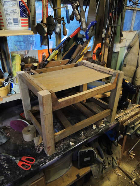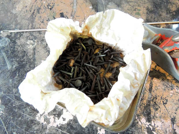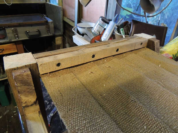 Esta fue la única parte realmente no reciclada. Me ha pasado tener un rollo de cinta en la vertiente izquierda encima de una silla que hace unas décadas atrás, por lo era útil. Y las tachuelas me durante la década de 1990 de la vertiente del papá de un amigo cuando él murió. Todavía estaban en una lata de tabaco que huele muy bien.