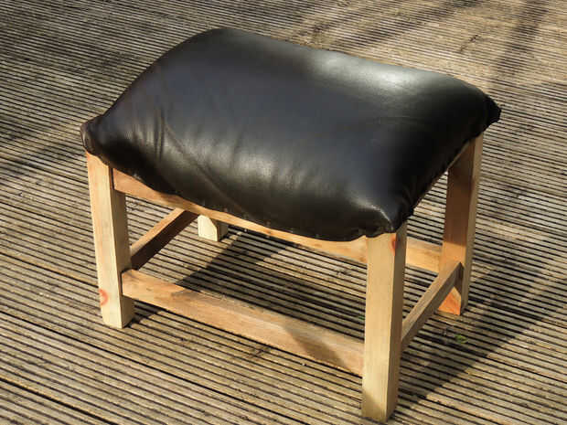 El taburete fue barnizado para sellar, pero terminó de otra manera.