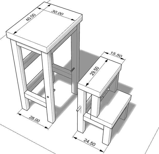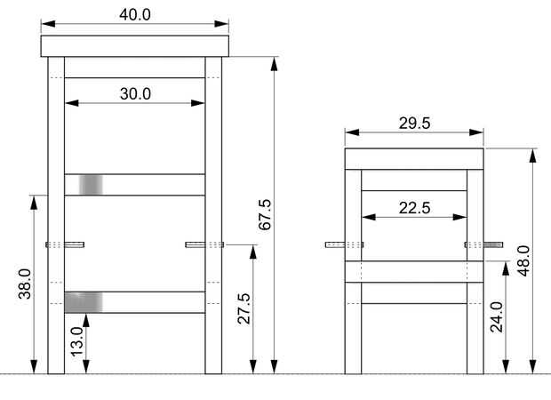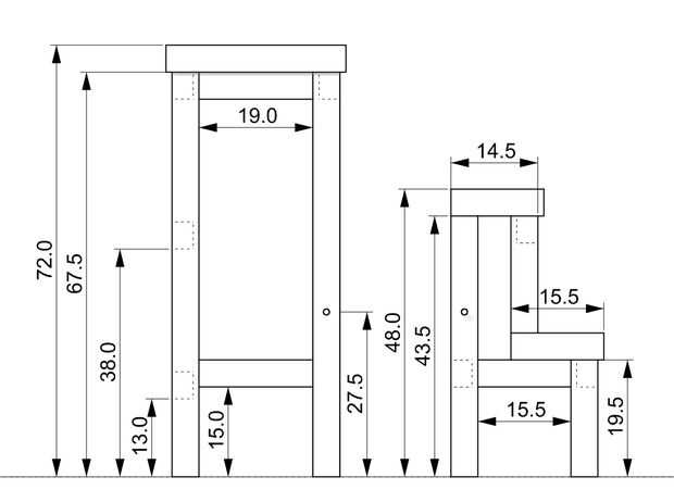 Y aquí los esquemas para esta versión más grande. Otra vez la madera tableros son 4,5 cm de grosor y las vigas con sección de 3.5 x 4.5 cm.