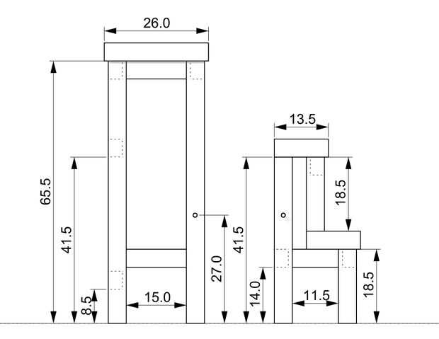 Aquí puedes encontrar todas las dimensiones necesarias para construir la escalera. Al diseñar las conexiones entre vigas, tableros y patas de madera consideran para determinar la longitud de los elementos. Por ejemplo, si desea utilizar pernos de madera, ya tienen dimensión correcta en mis esquemas, pero si usted quiere hacer juntas, tienes que añadir la longitud de las juntas a la longitud del elemento.