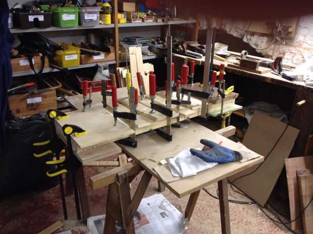 Con todas las pinzas de pegamento que pude encontrar para las tablas se sujetan.