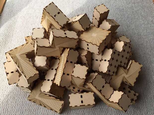 Este taburete es para 3 TenkaizuBudokai (concurso de taburete en Ogaki Mini fabricante de 2014).Material: MDF2.5 m m 300 * 500 m m 18sheets, 6sheets 300 * 300 m mTamaño: H200 * W400 * L400mmCómo hacer:1. cortar MDF con una máquina de corte láser.2. E