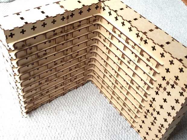 Este taburete es para 3 TenkaizuBudokai (concurso de taburete en Ogaki Mini fabricante de 2014).Material: MDF2.5 m m 300 * 500 m m 18sheets, 6sheets 300 * 300 m mTamaño: H200 * W400 * L400mmCómo hacer:1. cortar MDF con una máquina de corte láser.2. E