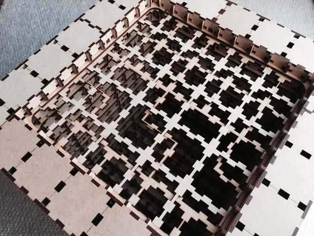 Este taburete es para 3 TenkaizuBudokai (concurso de taburete en Ogaki Mini fabricante de 2014).Material: MDF2.5 m m 300 * 500 m m 18sheets, 6sheets 300 * 300 m mTamaño: H200 * W400 * L400mmCómo hacer:1. cortar MDF con una máquina de corte láser.2. E