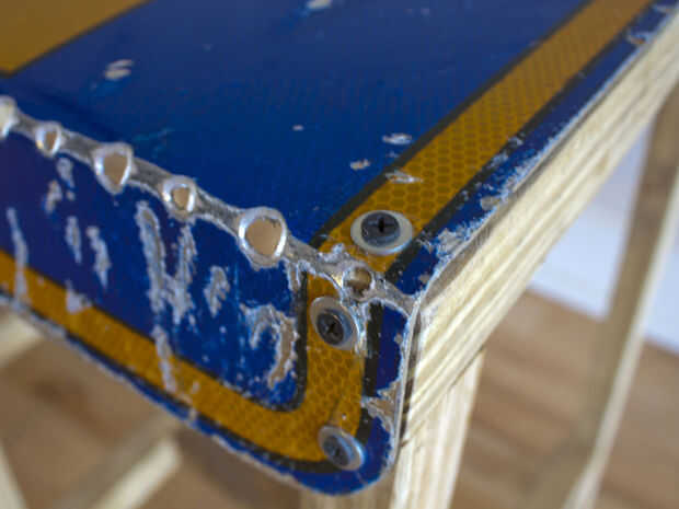Tengo mis señales en la pila de sobra en la yarda del ingeniero de carreteras de estado. Señales de aluminio son muy difíciles de reciclar porque el recubrimiento de los signos es costoso y difícil de bajar, por lo tanto haciéndolas rentables para fundirse. Viejas muestras a veces sólo son lanzados en una gran pila y olvidados... todo lo que necesitas hacer es preguntar. He encontrado tres del mismo tamaño, 15 "x 21".