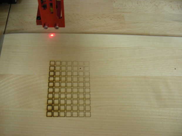 Para determinar los valores de velocidad y potencia de láser que desea utilizar para este proyecto, corrió una prueba material en la parte trasera del asiento del taburete que no se vea una vez montado.