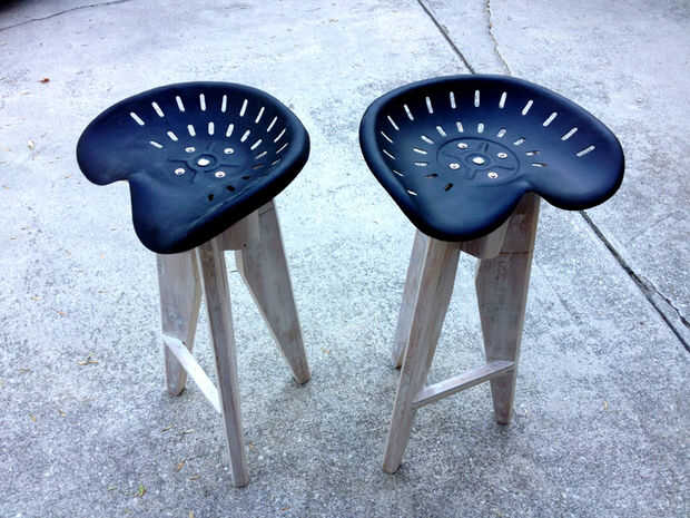 Perfore un agujero en el centro de la placa superior y fije el asiento del tractor con un perno de carruaje, con un montón de arandelas de goma para sujetar el asiento de la base un poco más. También he añadido cuatro tornillos más largos a través de pequeños agujeros en el asiento; cada silla es diferente, así que siguen el patrón de su asiento de tractor particular.