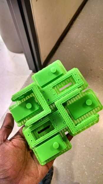 La impresión 3D es una bendición y la maldición de mi existencia. Como esta fue mi primera vez 3D impresión nada, tuve que pasar por una gran cantidad de iteraciones antes de que las partes salieron exactamente como quería. Añadir a que las impresiones se mantuvieron fallando debido a la finickiness de las impresoras. Pero, gracias al PIs en el estudio de invención, era capaz de conseguir todas las piezas hechas y algo más.