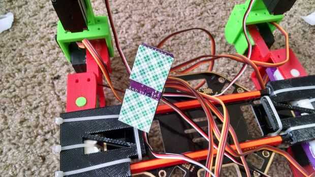Después de todos los servos se enchufado y el BEC conectado al conductor, os adjunto el controlador y el BEC en la parte inferior del robot utilizando la cinta de doble cara.