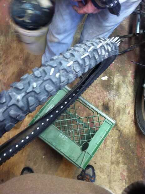 Tachonada de neumático de bicicleta para hielo (3 / 7 paso)