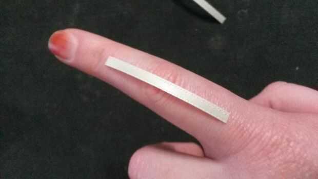 Cortar un trozo de cinta la distancia entre la base del dedo y la base de su nudillo superior.