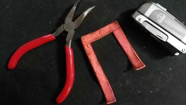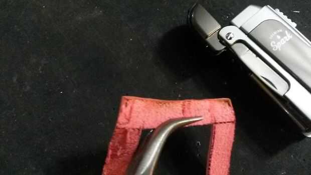 Pulir los bordes de la piel suavemente con un mechero. Especialmente con cueros suaves, utilice alicates o pinzas para sostener la piel y evitar quemaduras. Con cueros más rígidos, esto puede no ser necesario.