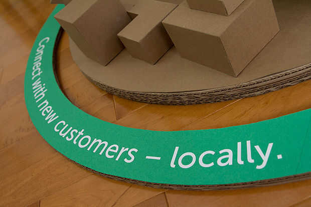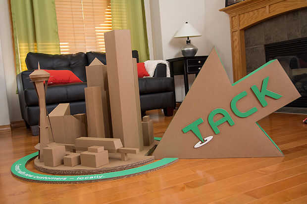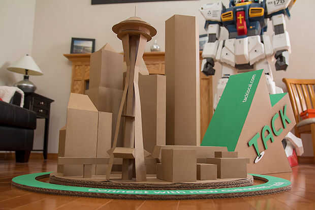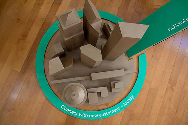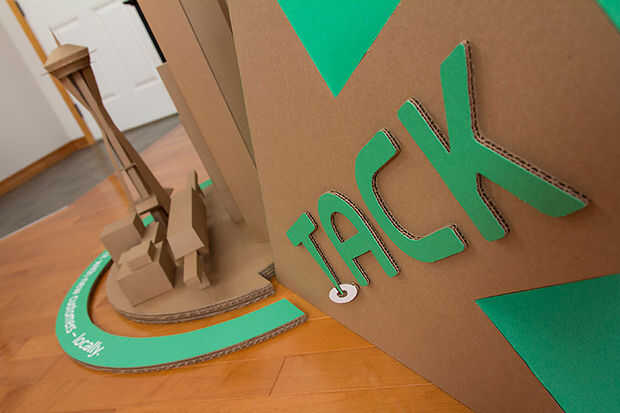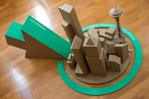 Uno de mi local Seattle basado en clientes que tacklocal.com participó en laConferencia interactiva de Seattle del 2014 con un stand de presentación donde anunció su nuevo producto digital. Acercó a mí con la petición de una exhibición artística e informativa que darle vida a su entorno de la cabina y ayuda a iniciar conversaciones. Me di cuenta de una solución creativa de tres partes que era la marca constante y con un énfasis en "local". 1 - vitrina modelo centro de mesa, 2 volantes de comida para llevar - modelos en miniatura a la dispersión en el ambiente de la cabina, 3 - con las plantillas de papercraft del modelo en miniatura. El paquete de la pantalla fue un gran éxito, ayudando a construir el compromiso del visitante a través de una presentación creativa y divertida nunca antes visto por los asistentes.