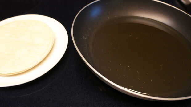 Coloque las tortillas de maíz en un plato al lado de la sartén.