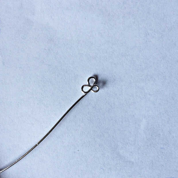 Envuelva el extremo del alambre alrededor de sus joyería alicates de punta, formando un bucle. No esta dos veces más para hacer 3 bucles en forma de trébol.