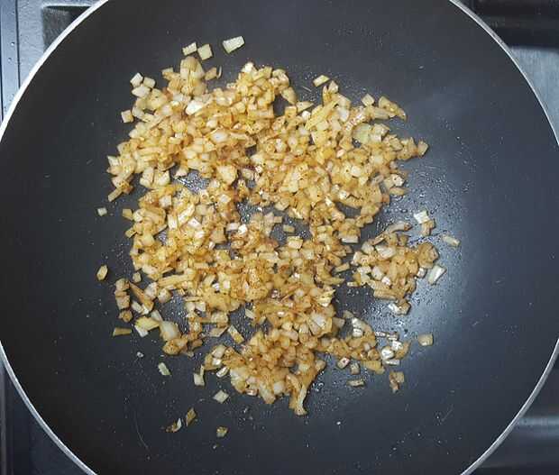Calentar el aceite en una sartén mediana sobre fuego medio. Cuando brilla, añadir la cebolla, especias y sal. Cocinar, revolviendo ocasionalmente, hasta que se ablanden, unos 3 minutos.