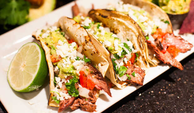 Después de cortar la carne, capa primero sus tacos con carne, seguida de la cebolla amarilla, cilantro, una cucharada de guacamole, queso fresco y salsa. ¡ Disfrute!