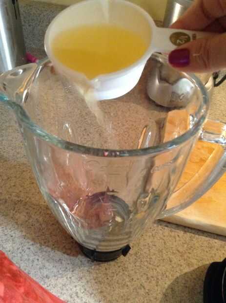 Para preparar la marinada, mezcla 1/2 taza de jugo de limón, 1 1/2 cucharada de sal y 2 dientes de ajo.