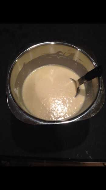 Agregar 3 huevos, 1 1/2 tazas de leche, 1 taza de harina, 1 cucharada de aceite, 1 cucharadita de extracto de almendra, 1 paquete de sweet-n-lo a un bol y se mezcla hasta que quede lisa. Esta es la masa de la crepe, que servirá como "shell" para el taco.