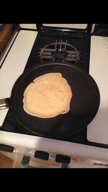 Dejó el primer lado del cocinero crepe hasta que quede un color oro claro luego voltearla y dejar al otro lado cocine hasta que se ve la misma. Ahora termine con el "shell" del taco