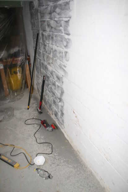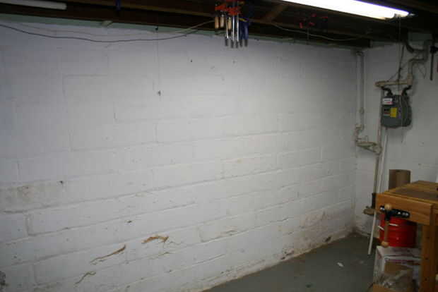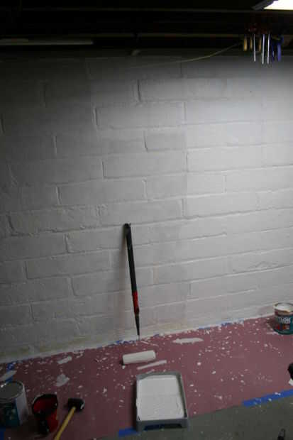 Primer problema, la pintura en la pared del sótano fue burbujeante y peeling. Parecía que tenía mucho más sentido para pintar la pared, antes de poner tanto en la construcción de algo que tendría que eliminarse.