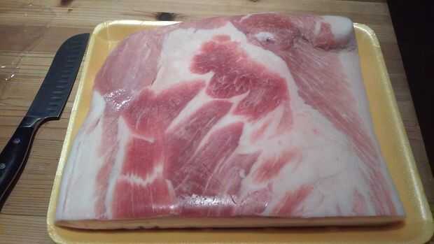 -Para esta receta, procuró una barriga de 4 libras. Sin embargo, puesto que no quería usarlo para esta receta, apartar la mitad para hacer tocino.-