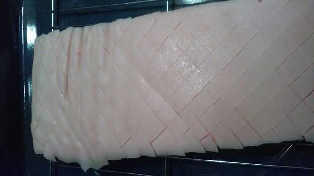 Cocine su propia versión de Porchetta en una manera fácil!Paso 1: ingredientes10-12 kilos de panceta de cerdo, piel de2 cucharadas de sal kosher6 dientes de ajo, ralladas o trituradas hasta obtener una pastasemillas de hinojo 1/2 taza1/2 taza fresca