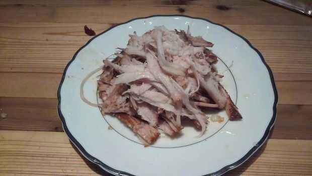 Terminé con 3/4 kg de panceta de cerdo desmenuzado tierno y suculento.
