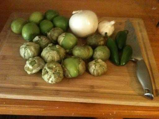 esta sabrosa salsa verde se hace con amor, cuidado y jalapeños.  Esto se sirve como una salsa regular o guisado con carne.  Hice mía con carne de cerdo.  Fácil y delicioso.Paso 1: ingredientes Salsa de Chile Verde:4 tomatillos1/4 de una cebolla grand
