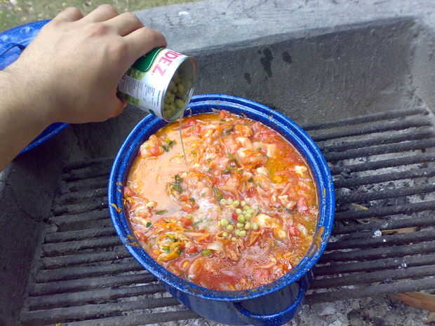 Paso 9: Cocinar a fuego lento durante unos 20 minutos, luego añadir los guisantes y cilantro