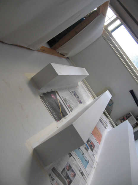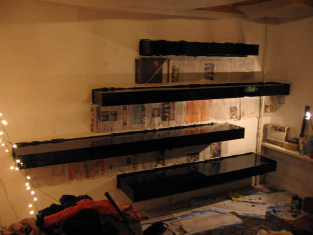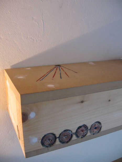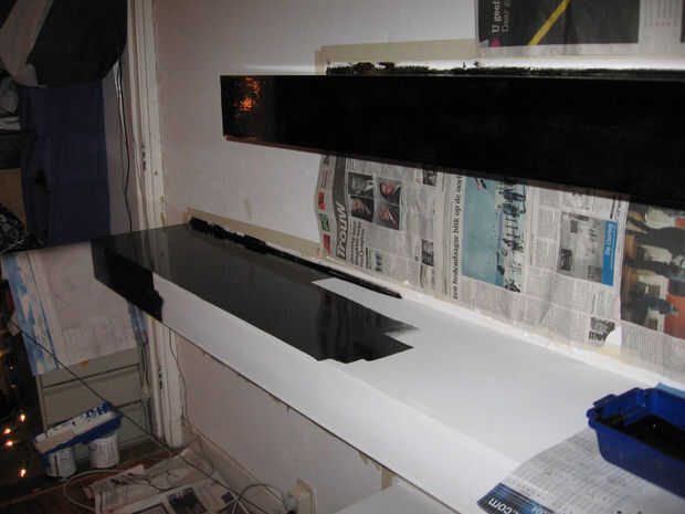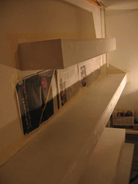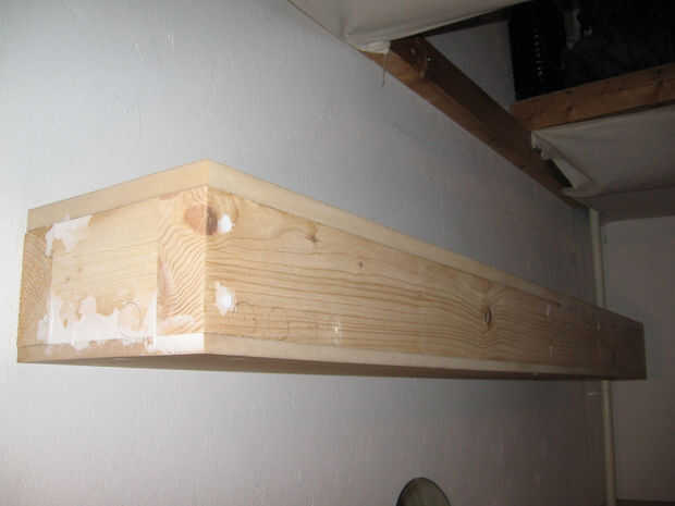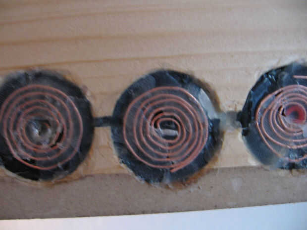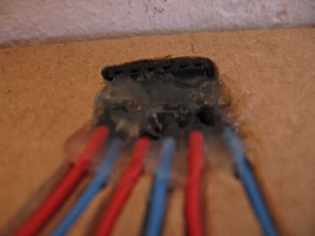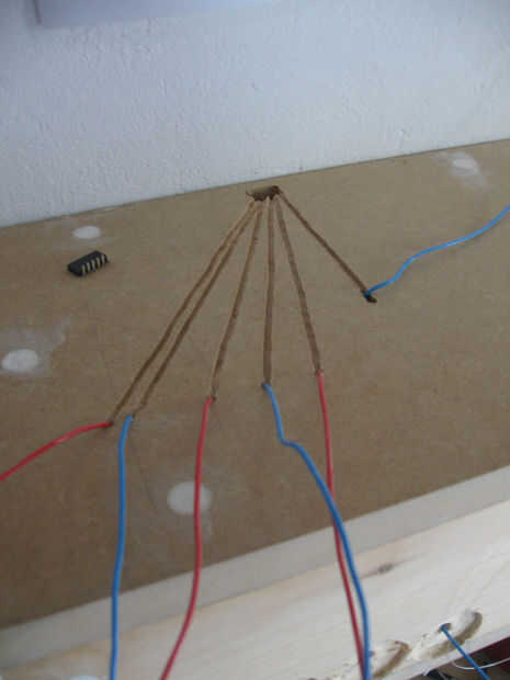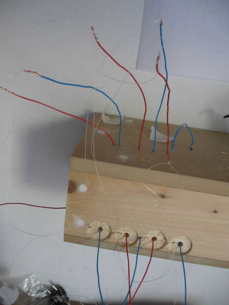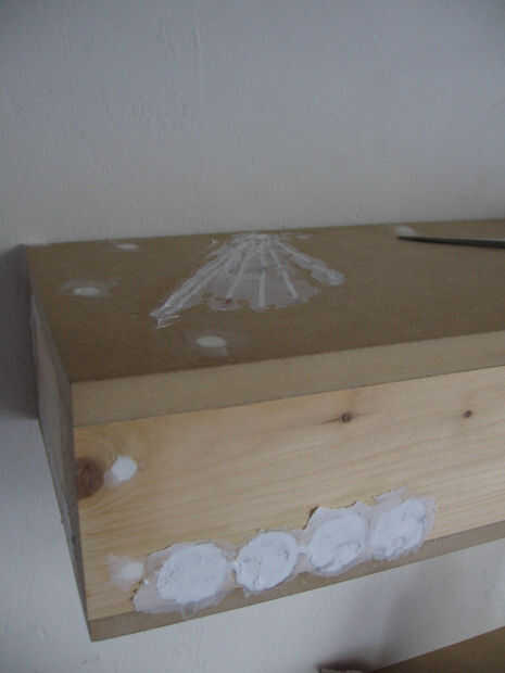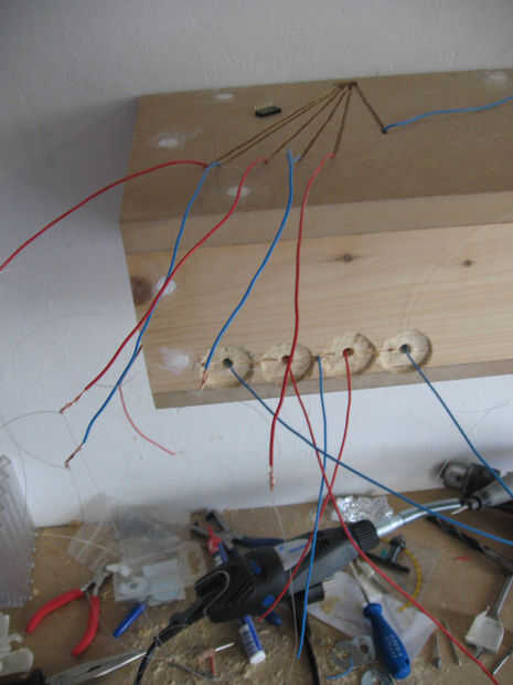 Algunas fotos más sobre la instalación de los sensores en una estantería. Un enchufe está instalado así como para facilitar la conexión con el circuito más adelante. Relleno se utiliza para ocultar todo, y después de están listos para ser pintados.