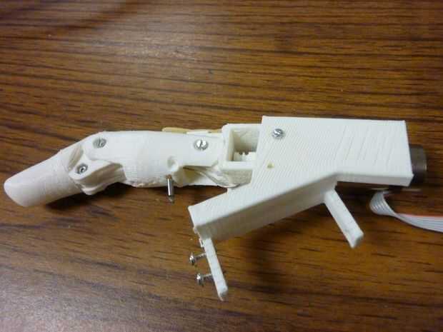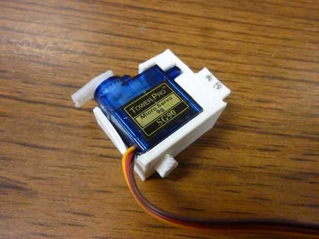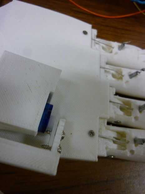 1. para montar el dedo pulgar terminado el cuerpo de la mano, primero encontrar el servo y servo del titular de la pieza impresa. Debe presionar ajuste juntos.