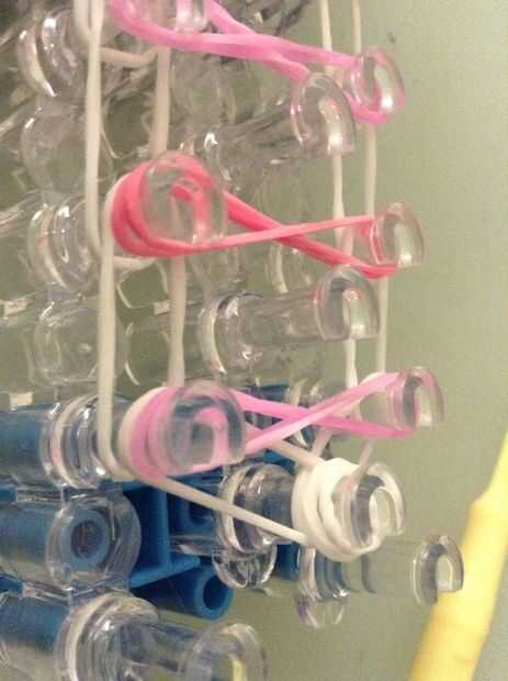 Paso 1: fuentes de 1. telar de arco iris2. crochet gancho telar gancho o arco iris3. bandas de goma4. C clip o clip de sPaso 2: Cómo empezar Tomar tus bandas claro y colocarlos donde están en la foto.Paso 3: Hacer el efecto de la roca del caramelo En
