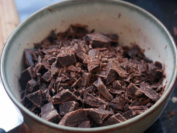 Fundir el chocolate con pequeños zaps en el microondas (Sabe usted cómo por ahora sí? - 30 segundos intervalos, revuelva con frecuencia, etc.).