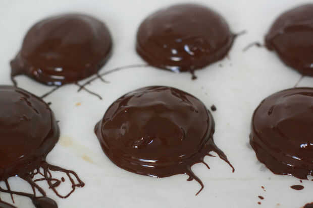 Sumerja sus galletas en el chocolate con un tenedor dar eso bifurcación de algunos grifos saludables en el lado de la taza para quitar el chocolate sobrante y colocar las galletas sobre papel encerado se enfríe.