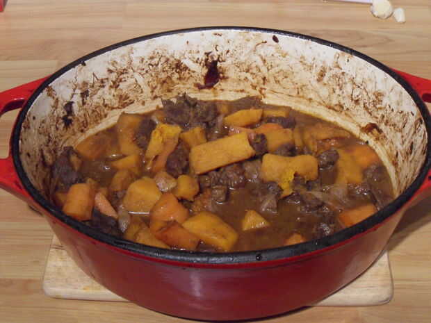Estará listo cuando la carne se deshace en la boca y la calabaza es lo suficientemente suave como para hacer puré con la parte posterior de un tenedor.