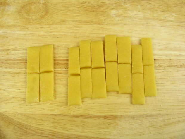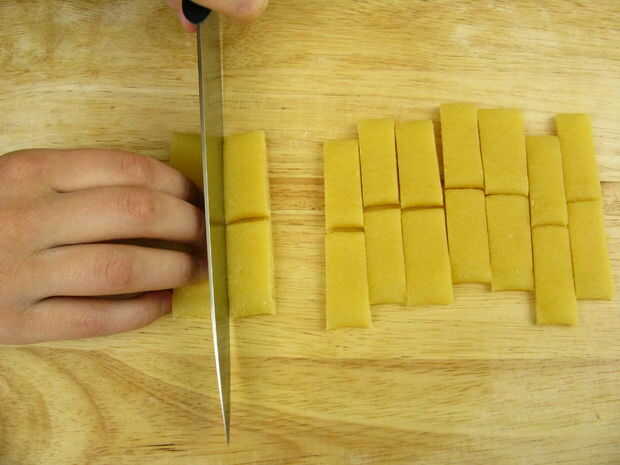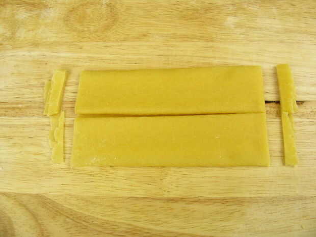 Cortar la pasta en tiras tamaño incluso - generalmente de hasta 1cm o 2/5" de espesor.