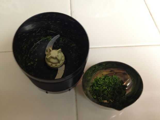 Sugerencia: utilizar un mezclador de especias que sirven para desmenuzar las hojas a un corte fino