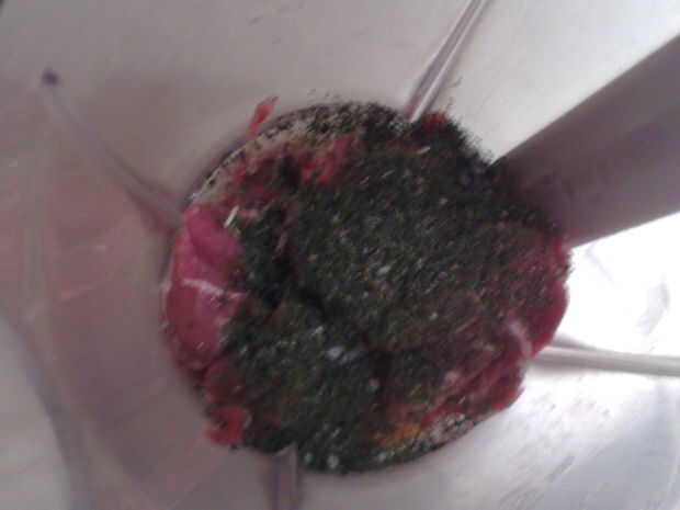 Adquirir una licuadora robusta de un vecino (sólo en caso se rompe) y mezcle los ingredientes de la albóndiga. El orden de ingredientes no es fundamental pero cuidadosamente ponga el huevo muy importante en el último. Decir adiós a los ingredientes como entidades separadas.