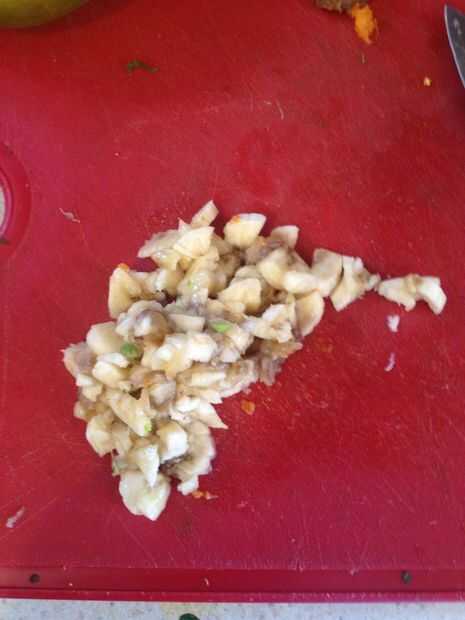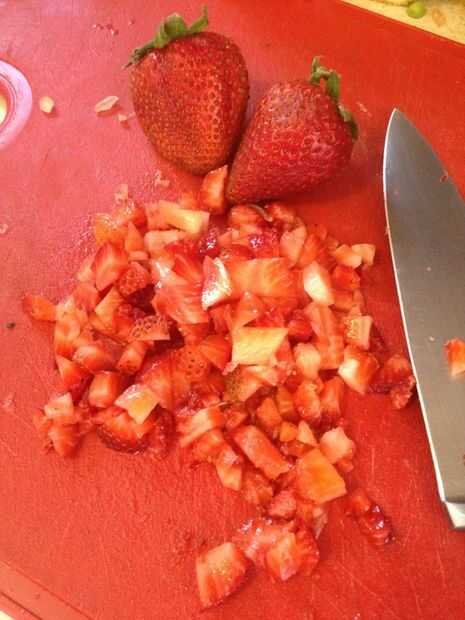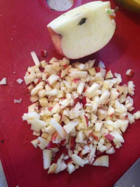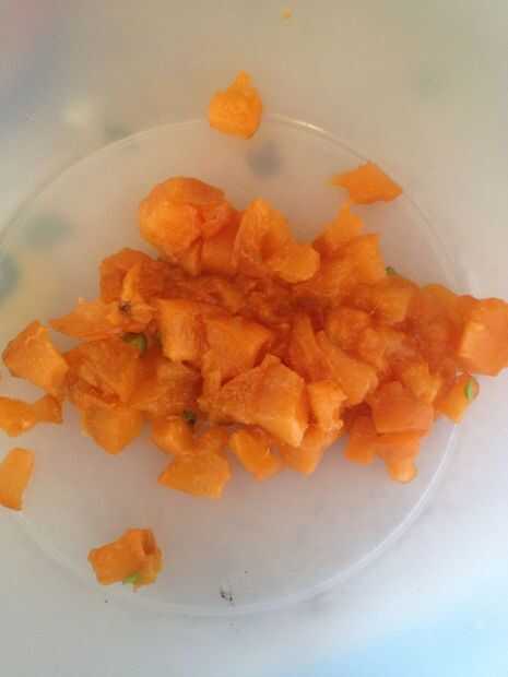 Usando las frutas y verduras que usted seleccionó, picarlos en pedazos de tamaño de clavo pinky o más pequeñas. Me gustaria tener una variedad de diferentes tamaños ya que tengo aves de tamaño diferentes en mi rebaño, pero preferencias difieren entre aves.