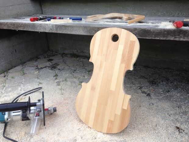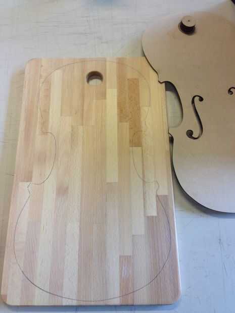 Comience con copiar el diseño de su plantilla en la tabla de cortar y recortar con la sierra caladora. Dejar algún material extra (+-3mm). Esto se quitará con el router.