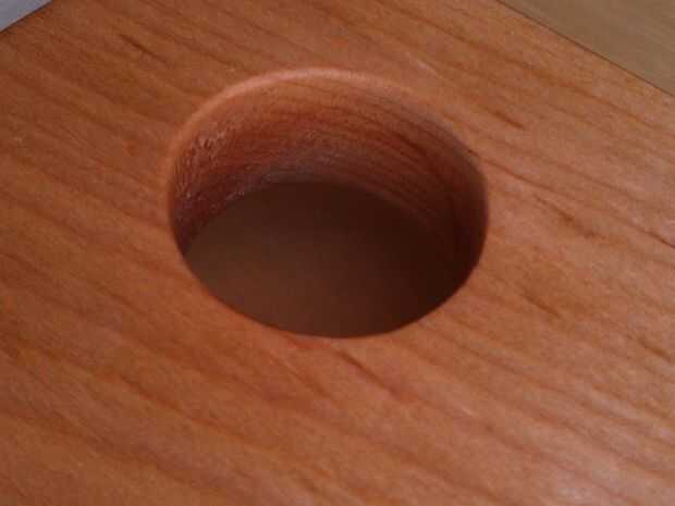 Para el interior del agujero de la arena lo hice a mano. Solía grano 120 asaltos sobre los bordes del agujero y quitar las rebabas de la perforando primero trabajé para arriba a través de los granos. No estoy 100% contenta con el resultado que obtuve dentro del agujero, polvo tiende a rellenar todas las grietas poco mientras estás trabajando, haciéndole sentir más suave de lo que es.