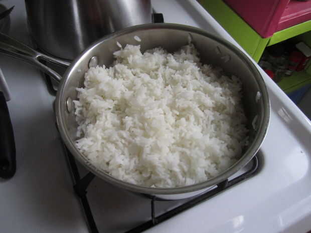Yo siempre hacer 1 taza de arroz y 1 3/4 taza de agua - poner la taza de agua a hervir con una pizca generosa de sal, verter el arroz y girar el calor baja y cubierta. Cocinar por 18 minutos, apagar el fuego y dejar reposar cubierto durante 10 minutos y luego Esponjar con un tenedor.
