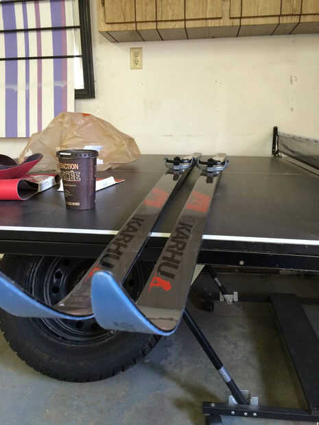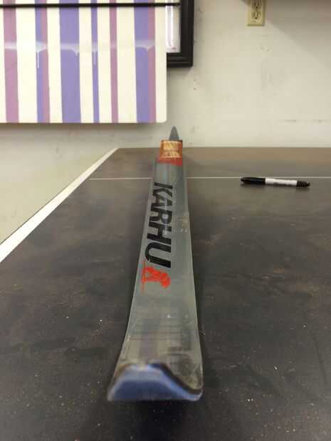 Mida sus esquís de la extremidad hacia abajo dondequiera a partir 20" 26" de la energía del resorte buena. Corté en 23,5" desde la punta.