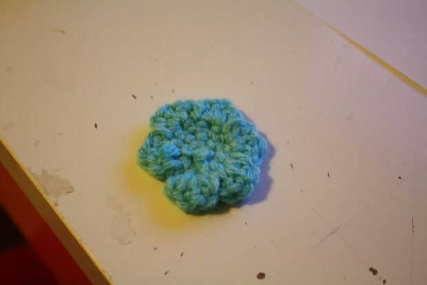 R3: 3 dc en primer sc, slst en sc segundo repita 6 veces