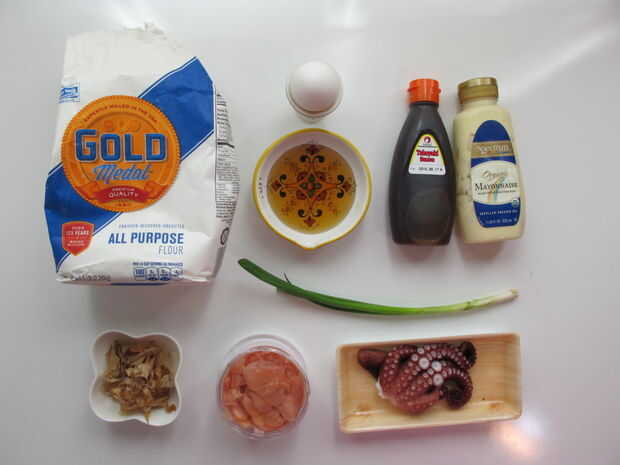 Todos los ingredientes se pueden encontrar fácilmente en cualquier mercado japonés. Pulpo es clave, pero si no te gusta el pulpo, siempre puede usar chorizo, kimchi o cualquier otro ingrediente que te guste.