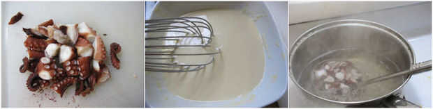 Si el pulpo está crudo y no es grado sashimi, puede hervirlas en agua caliente durante unos segundos (no hervirlos más de 15 años!)